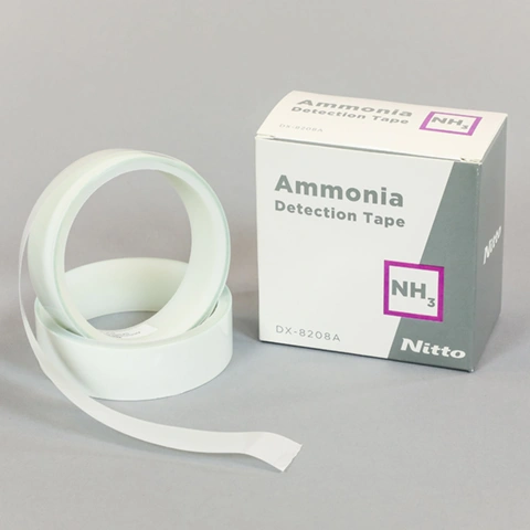 1/3 2/3 3/3 Ammonia Detection Tape – DX-8208A Device discontinued Product code: DX-8208A DX-8208A Detection Tape for ammonia leak detection. See full description Product description Ammonia detection tape allows for the visual detection of ammonia gas leaks by changing color from white to blue/green when in contact with ammonia gas. Features: Tape visually changes color, from white to dark blue/green, in as little as 10 seconds when exposed to NH3 (depending on the flow rate, temperature, time and percentage of ammonia). Provides an additional safety net for detecting gas leaks and improves detection time by making it easier to find intermittent leaks. Is highly sensitive and can detect ammonia leaks that contain as little as 220ppm NH3 concentration. DX-8208A will provide a long-lasting color-change once exposed to ammonia gas. Easy to use; applies the same as a typical silicone / polyester PSA. Can be used in most indoor or outdoor environments. Color change retention time is over 24hrs, typically over 3 days, depending on exposure condition. Superior capability in detecting the location of the NH3 leak. Less influenced by wind, position, duration, skills, etc. compared to conventional ammonia detection products. Easy to check vertical and bottom faces of the adherend. Files to downloadDatasheets:Taśma do detekcji amoniaku DX-8208A - Karta Katalogowa Download fileOthers:Taśma do detekcji amoniaku DX-8208A - Instrukcja stosowania Download file Related products Hydrogen Detection Tape - DX-2106H